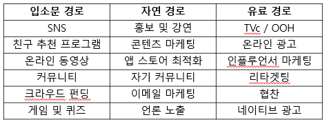 경로에는 입소문 경로 / 자연 경로 / 유료 경로가 있다