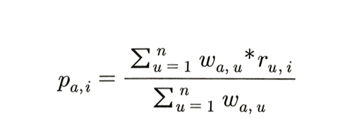 p(예측값)는 w(각 유저의 유사도)의 합으로 w*r(각 유저의 평점)을 나눈 것이다.